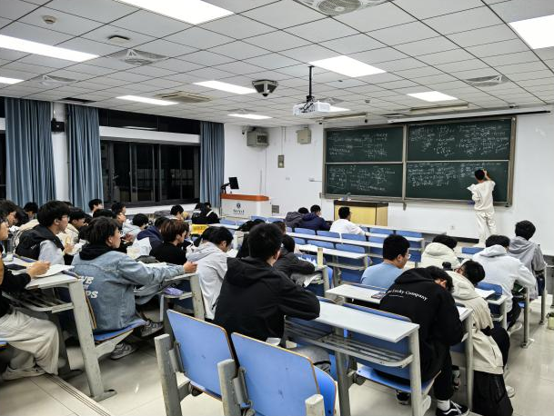 为解决模拟考试知识漏洞、提升同学高数解题能力,考后学院完成试卷整理与数据统计。11月10日晚,辅导员安排试卷评讲,组织高数成绩优异同学集中讲解。讲评中,主讲同学结合错题拆解知识点、梳理解题步骤、分享答题技巧并答疑,现场学习氛围浓厚。
