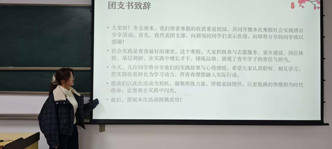 为切实提升学生综合实践能力,明晰未来发展方向。3月8日,信控学院电子信息类25-02班于博学2号楼B303教室开展“寒假社会实践分享”主题团日活动。活动邀请班级三名同学依次登台,分享各自寒假社会实践的经历、收获与感悟。