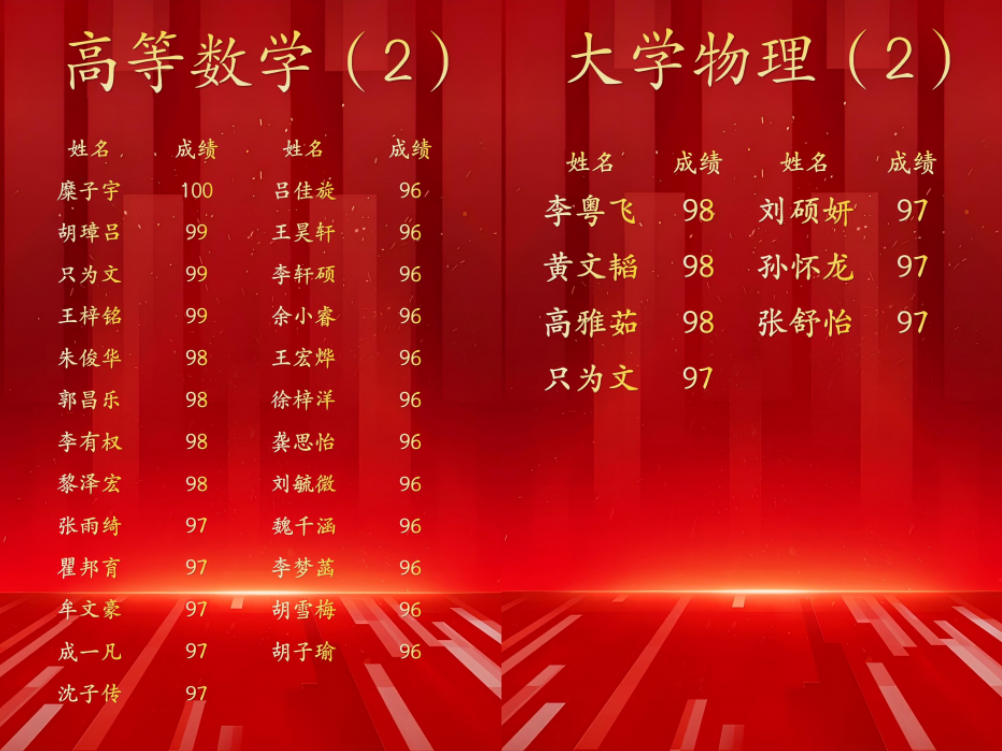 本次评选中,高等数学(1)获奖68人,占比20.92%;高等数学(2)获奖25人,占比30.49%,基础英语实践(1)获奖20人,占比23.53%,以上两项科目获奖占比均远超其他学院平均水平,充分展现了学院在数理和英语基础学科建设上的领先成果;基础学术英语获奖15人,占比15.63%,大学物理(2)获奖7人,占比10.77%,各科目获奖人数均位居全校前列。