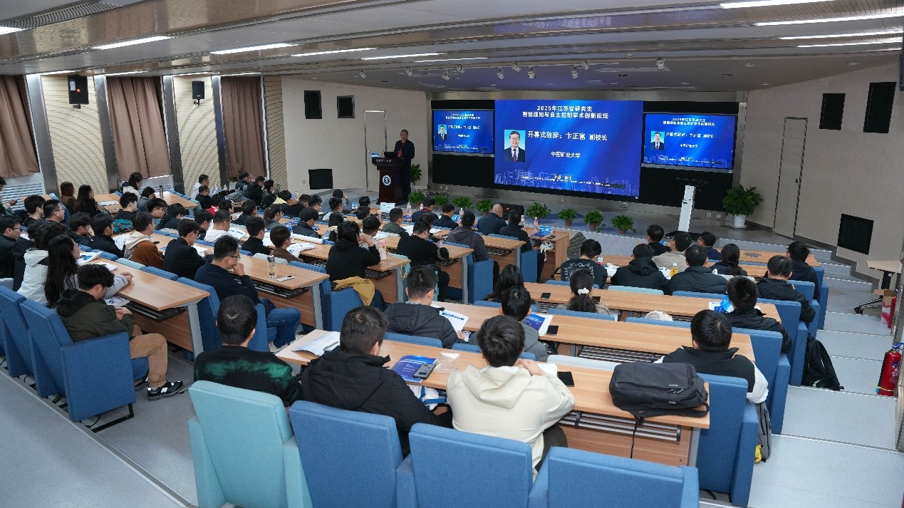 近日,2025年江苏省研究生“智能感知与自主控制”学术创新论坛在我校举办。论坛由江苏省工学2类研究生教育指导委员会主办,我校信息与控制工程学院、研究生院、地下空间智能控制教育部工程研究中心、复杂工业系统安全监控与自主控制江苏高校重点实验室联合承办。副校长卞正富,江苏省工学2类研究生教育指导委员、江苏省自然资源厅二级巡视员张进民出席开幕式,来自全国高校和科研院所的150余位专家学者及研究生参加论坛。论坛开幕式由信息与控制工程学院院长王雪松主持。