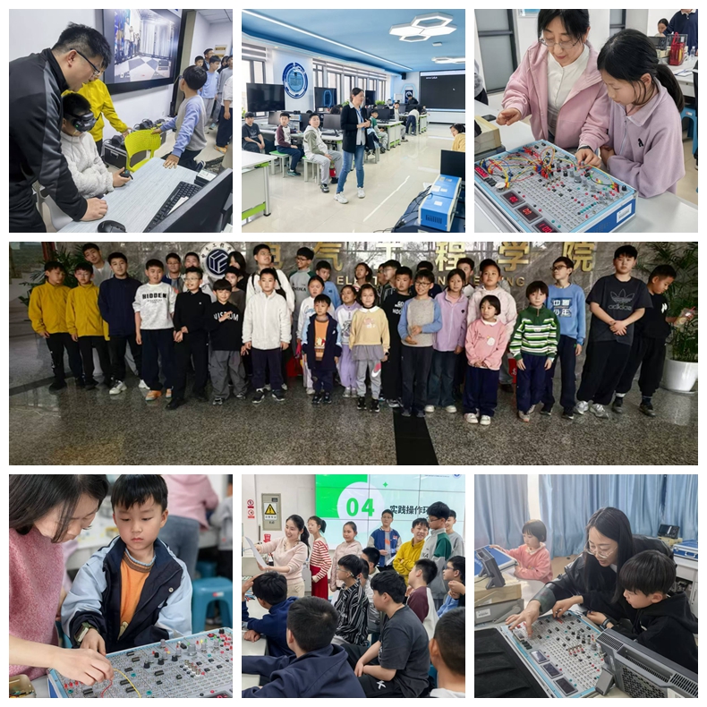 根据学校关于江苏省中小学生春假期间实验室开放的部署安排,4月1日下午,信控学院实验中心、院工会及关工委联合举办了2026年春假实验室开放日暨“电工电子”主题科普活动。来自矿大附属中小学、徐州市大学路实验学校、鼓楼小学、光荣巷小学、东湖实验小学、青年路小学、民富园小学、江苏师范大学附属学校等单位的近40名中小学生及家长共同参与。